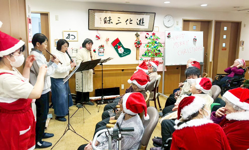 ご利用者さま同士やスタッフみんなで一緒に歌を歌ったり、楽器を鳴らしたり、音楽を聴いたりしています。音楽の時間を通して、自然と心がリラックスし、気持ちを表現するきっかけにもなっています。懐かしい曲が流れると当時の思い出話に花が咲き、笑顔や会話が自然と広がります。音楽を通じて、人と人とのつながりを感じられるひとときとなっています。