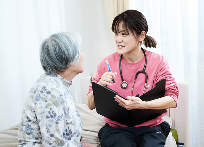ご利用者さまだけでなく、ご家族の心や生活にも寄り添います。介護や医療への不安には看護師が丁寧に対応し、日常のケア方法や体調変化への対処をわかりやすくご説明します。